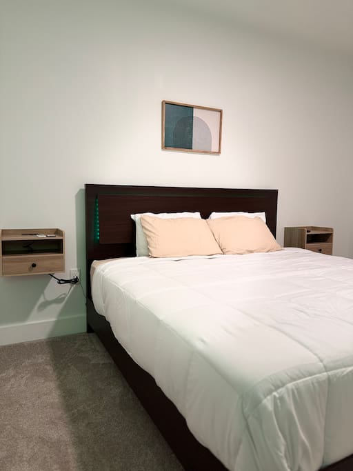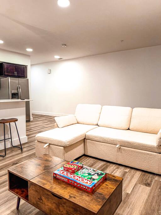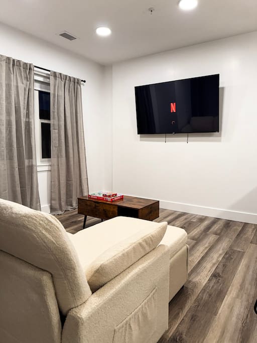 Relax in this stylish downtown retreat designed for comfort and convenience. Enjoy a spacious, earthy vibe with warm tones and natural textures. Unwind in a plush king bed, cook in a fully equipped kitchen, and lounge in a cozy living area with games and a smart TV. Free parking adds ease to your stay, and top restaurants, shops, and attractions are within walking distance. Perfect for business travelers, couples, and anyone seeking a chic getaway. Book now!